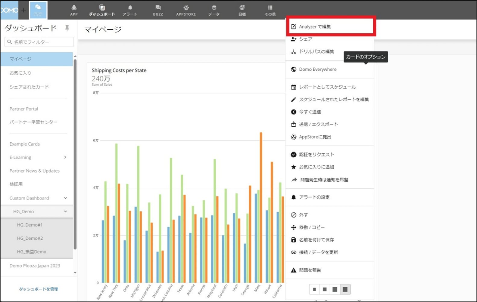 Beast ModeはDomoのカード(グラフや表)を作成する際に、Analyzer画面から計算フィールドから利用できます。