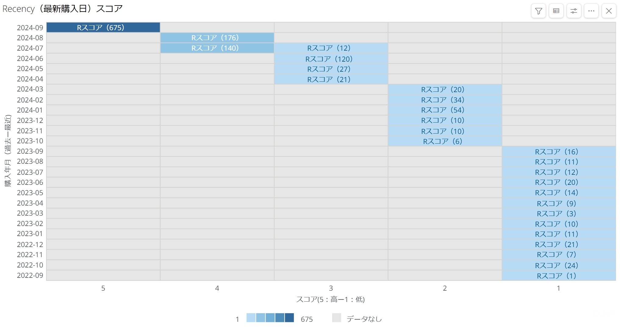 顧客が最後に購入した日からの経過日数を示します。最近購入した顧客ほど、再度購入する可能性が高いと考えられる。 |